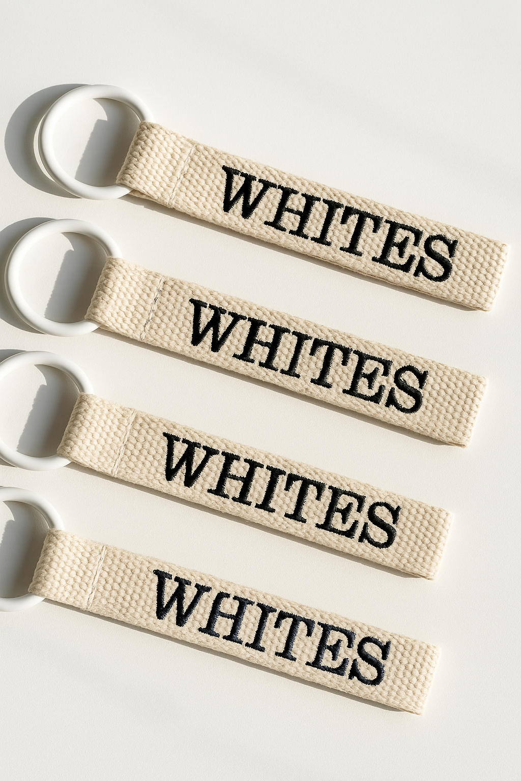 Custom Embroidered Name Tag – Black & White Keychain