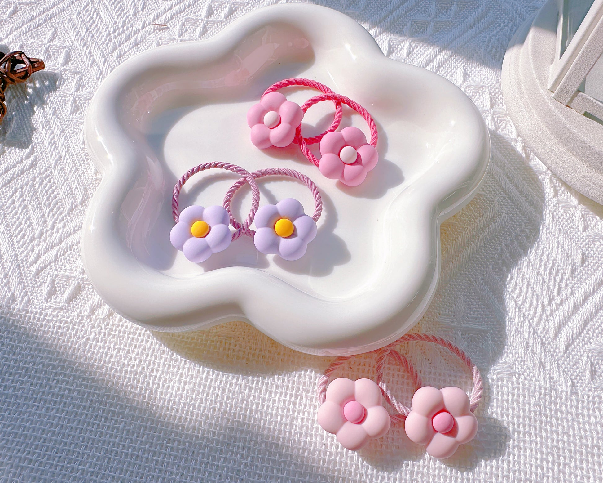Add a touch of charm and elegance to your little one's hairstyle with these adorable floral hair ties! Designed with a delicate bow that resembles a beautifully wrapped gift, these hair accessories are both stylish and practical.